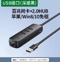 绿联(UGREEN) usb网口转换器 有线扩展坞 百兆+USB2.0*3 黑色