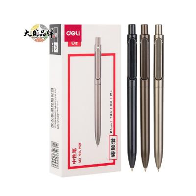 得力(deli)乐素臻顺滑 A12中性笔签字笔 0.5mm子弹头按动笔水笔 金属喷漆 黑色 12支/盒