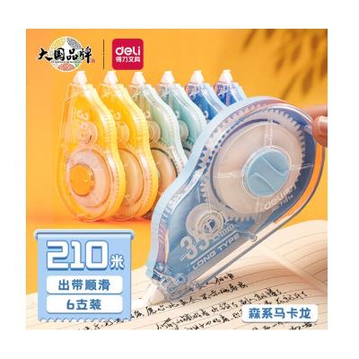 得力(deli)210米 大容量修正带 可爱马卡龙 顺滑不断带涂改带/复印无痕改正带 71514 6个装